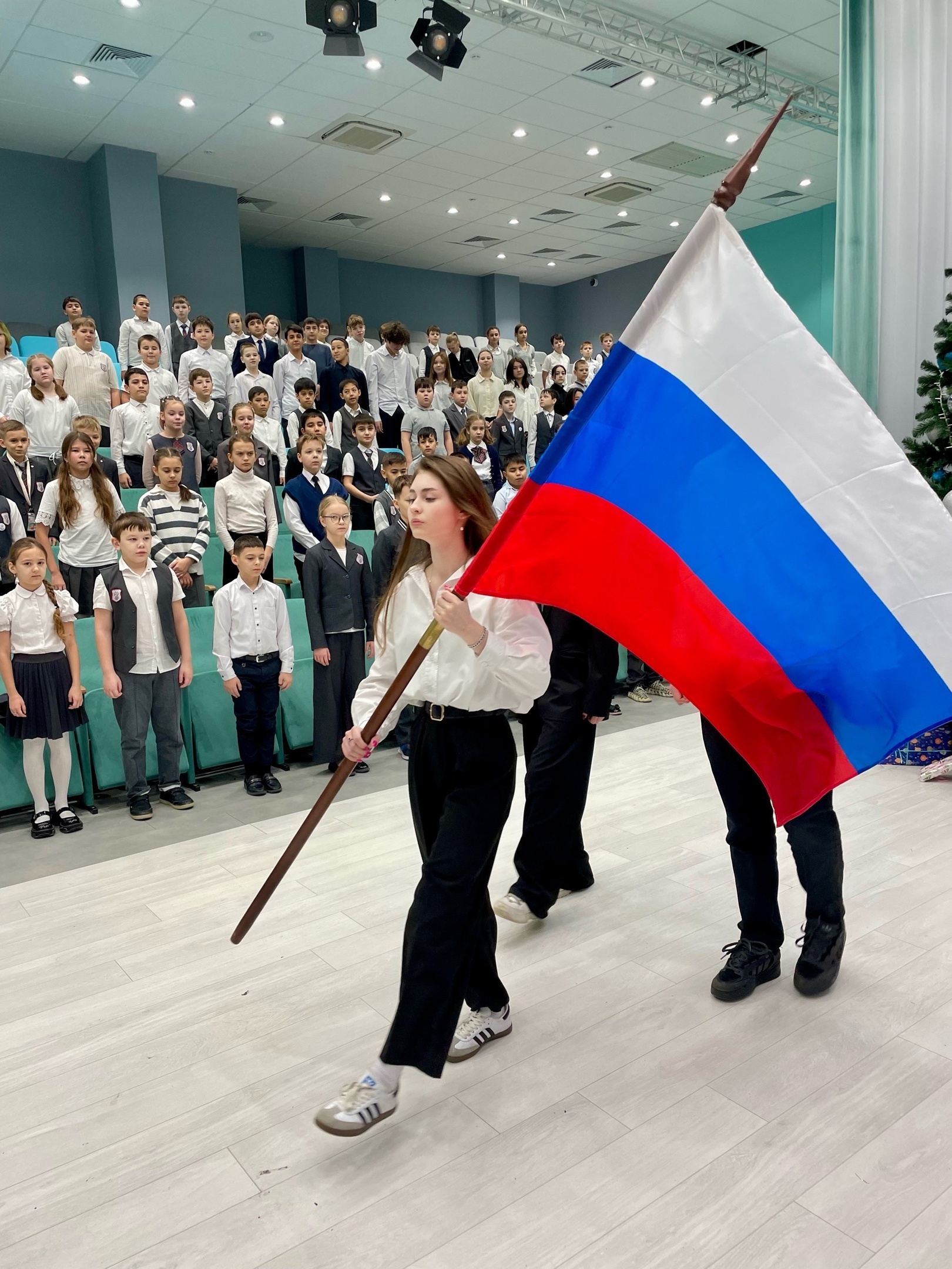 Новый календарный год и новая учебная неделя начались с торжественной церемонии выноса флага Российской Федерации!