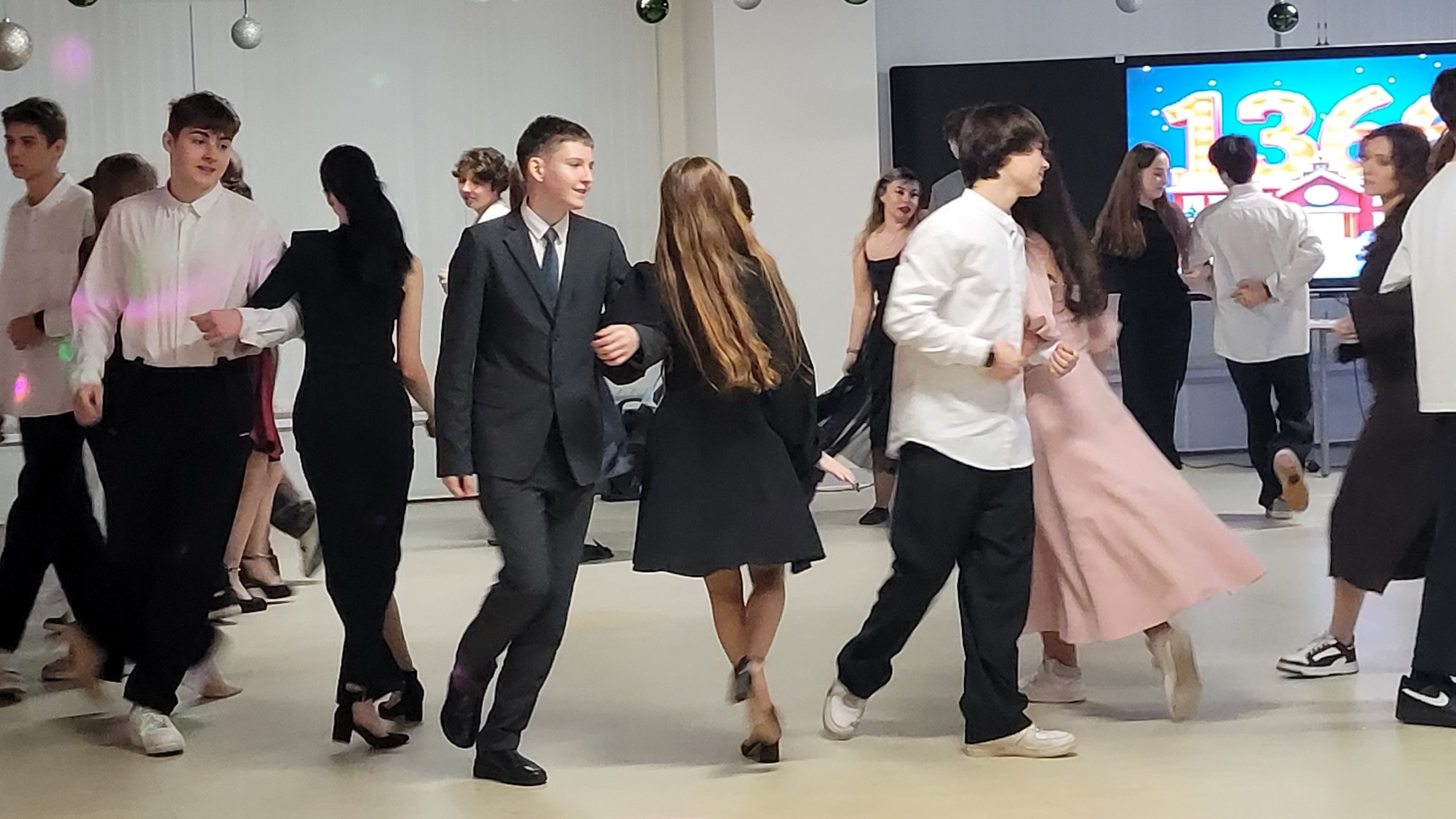 На последней учебной неделе в нашей школе прошёл незабываемый “Новогодний вечер” для старшеклассников и педагогов. Это событие стало настоящим праздником, который объединил всех участников в атмосфере дружбы, радости и веселья. Одним из ярких моментов вечера стали танцевальные номера. Старшеклассники кружились в классическом вальсе, танцевали польку и даже представили танец “Шапелуаз”.