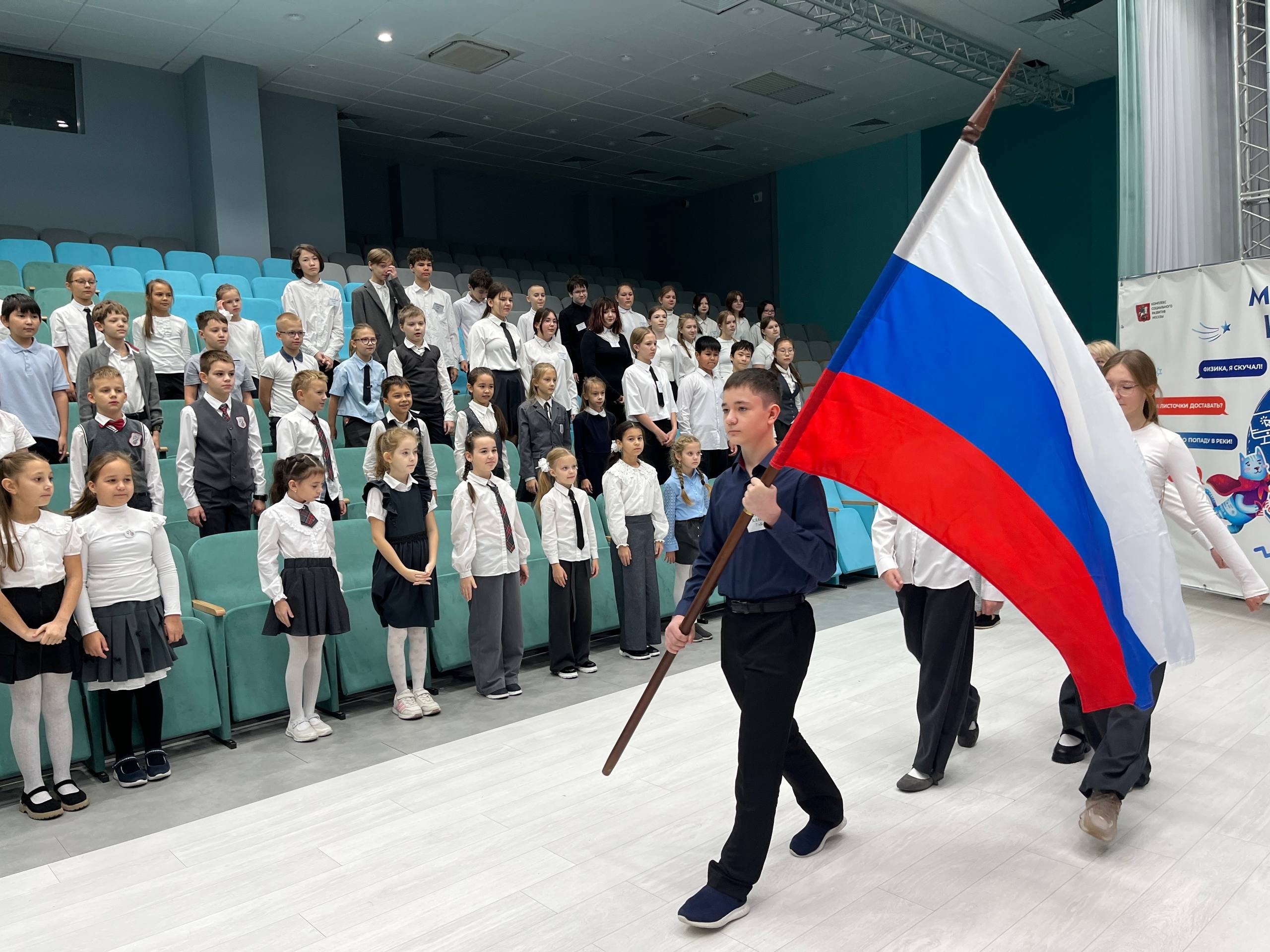 Сегодня утро в нашей школе началось с самого важного и волнительного события недели — торжественной церемонии выноса Государственного флага России!